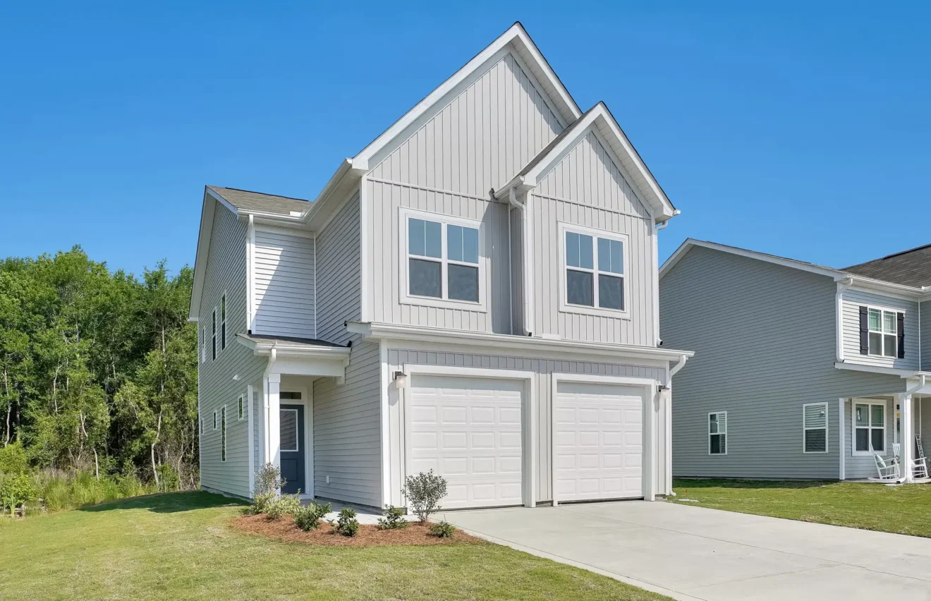 A thoughtfully designed two-story home that blends timeless coastal style with the functionality today’s families need. With its crisp white exterior, contrasting shutters, stone accents, and welcoming front porch, this home captures the charm of coastal Carolina living.