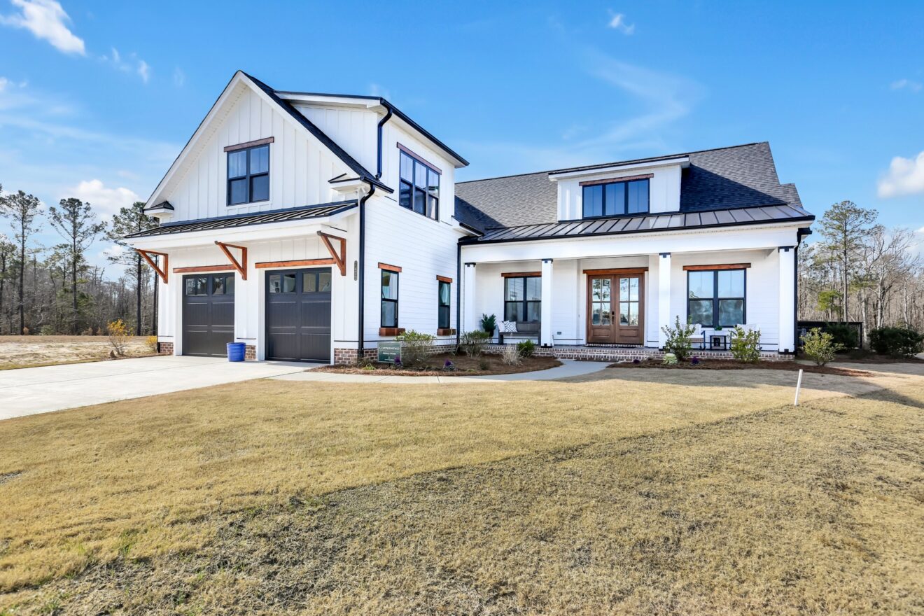 - Striking exterior with architectural dormers, brick accents, and metal roof detail