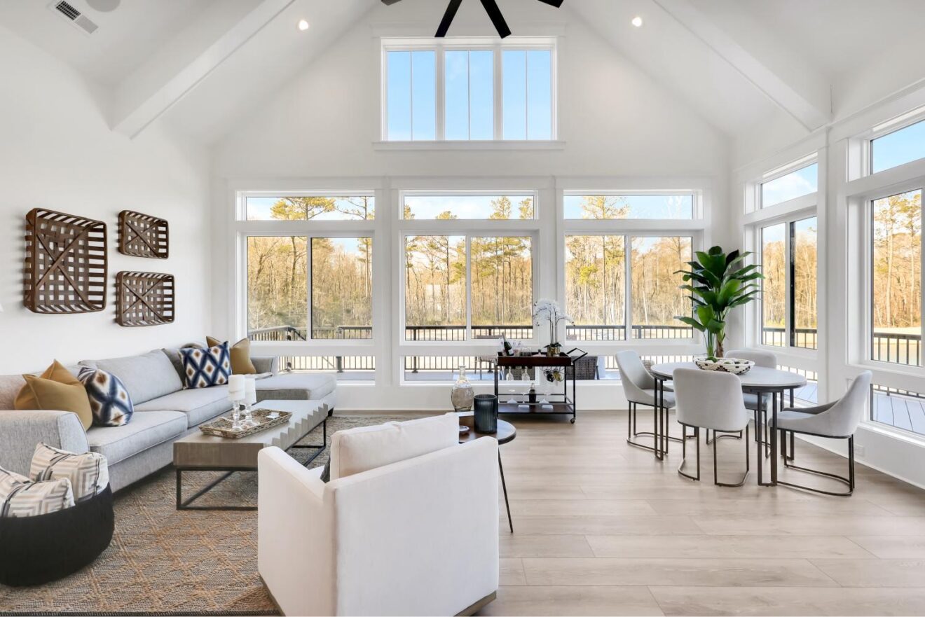 A cozy glass-enclosed sunroom is the heart of this home, hosting casual dining, sports and games, rest and relaxation. It’s a comfortable spot to enjoy life to the fullest. The private owner’s retreat offers a serene escape with a spa-inspired bathroom, generous walk-in closets, and plenty of natural light.