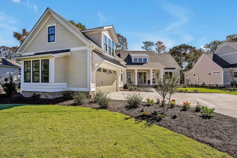 The Harbour Side Canted by Hagood Homes is a thoughtfully designed coastal home that blends comfort, elegance, and livability into one seamless experience. From the moment you step inside, the home feels open and welcoming, with natural light pouring through expansive windows and drawing your eye toward serene water views.