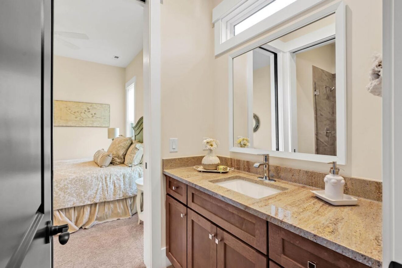 Private spaces are thoughtfully positioned for comfort and retreat. The primary suite offers a peaceful escape with abundant natural light and a well-appointed bath designed for relaxation. Guest rooms provide flexibility for family, visitors, or a home office, adapting easily to changing needs.