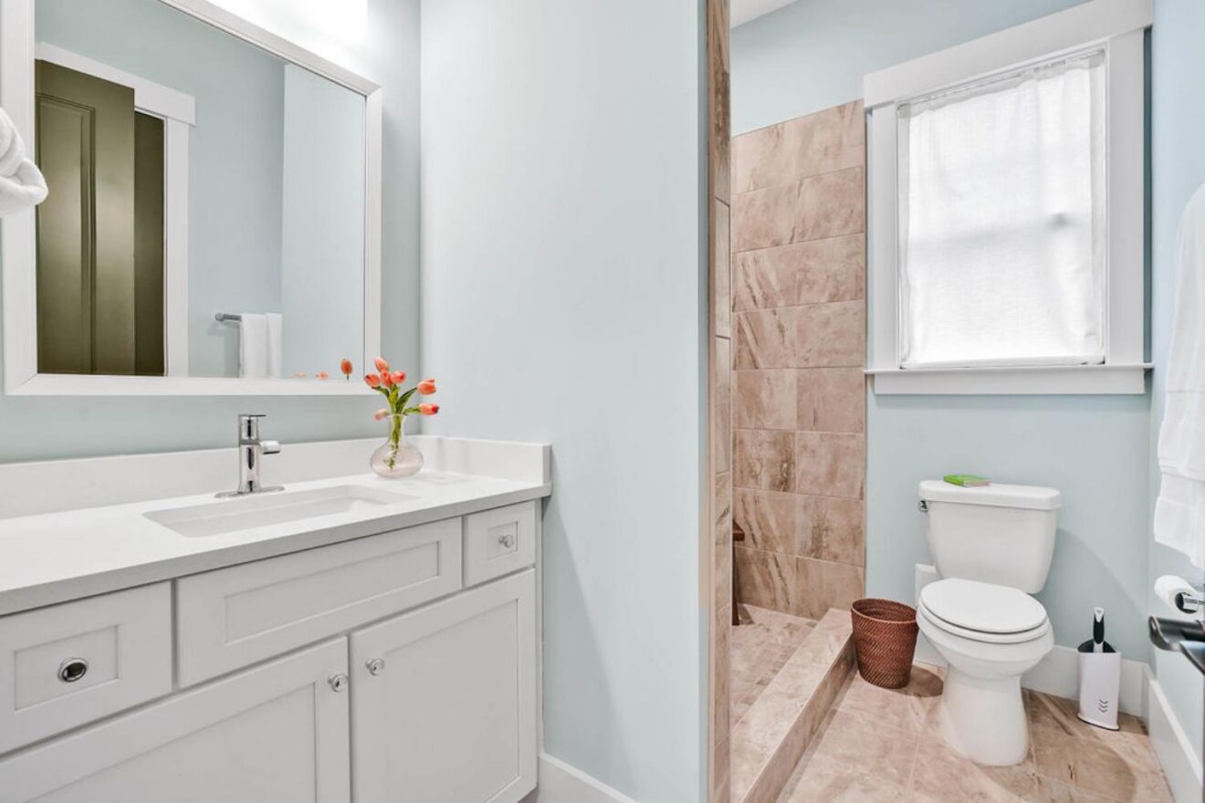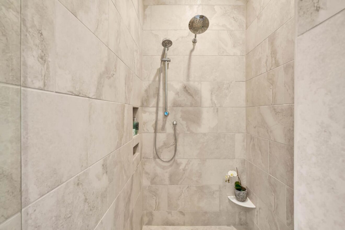 - Master suite with oversized tiled zero–entry shower