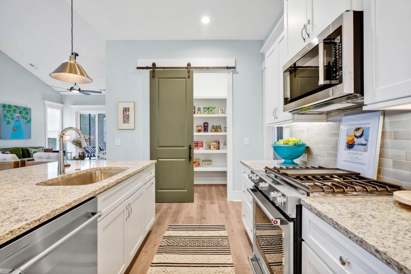 - Chef’s kitchen: granite countertops, tile backsplash soft-close of cabinets and large pantry