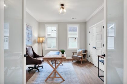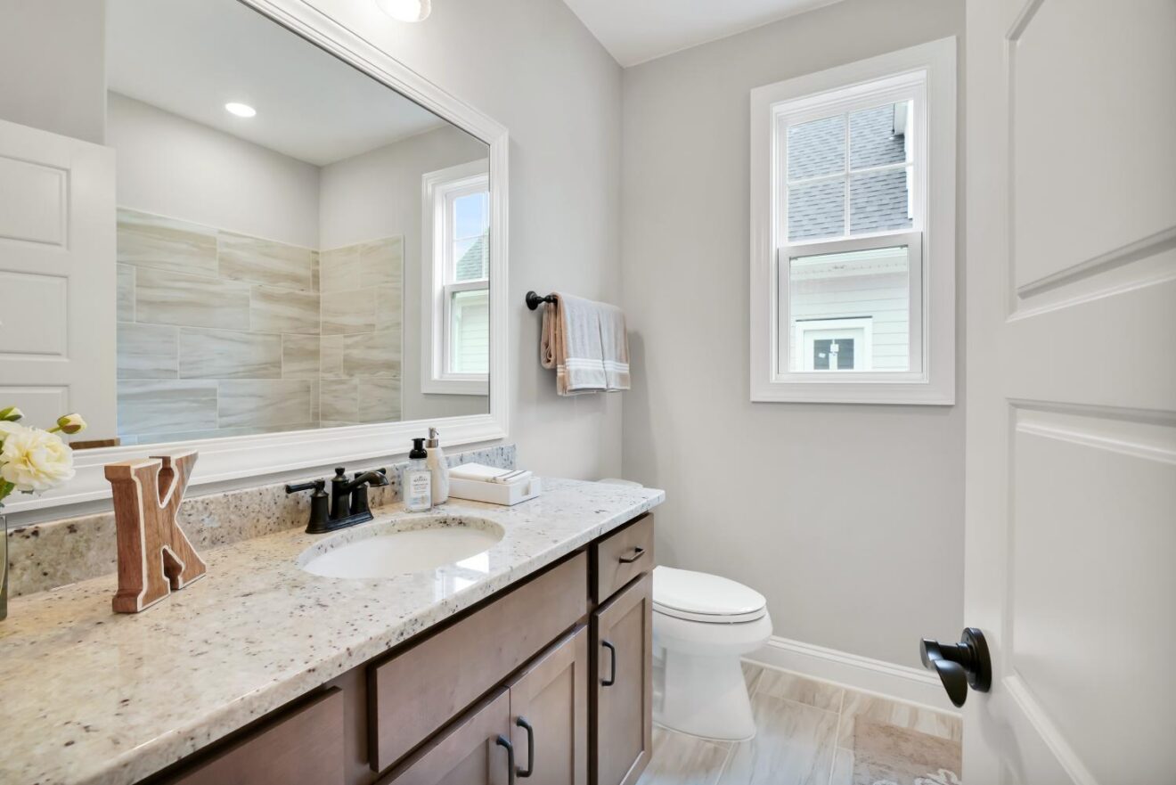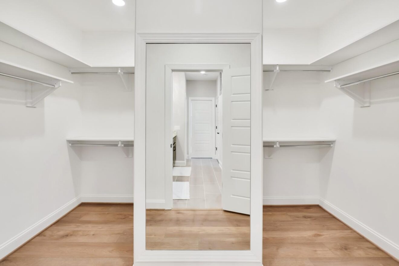 Retreat to the owner’s suite, where a spa-like bath awaits with a tiled walk-in shower, dual vanities, and a generously sized walk-in closet with custom shelving. Additional highlights include an expanded laundry room, formal dining space, and energy-saving features like a tankless water heater, radiant barrier roof, and Ecobee smart thermostat.