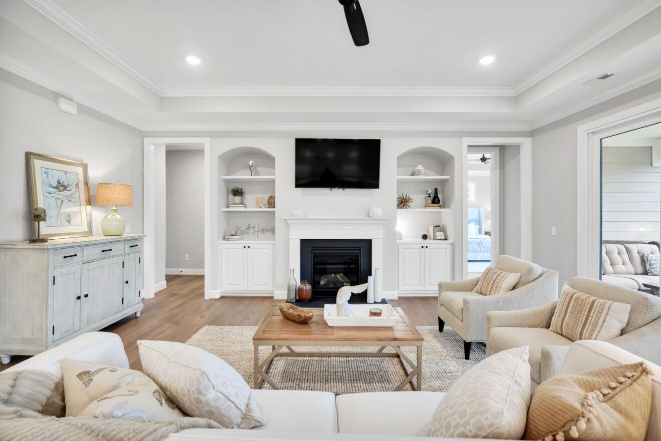 Located in the desirable Creekside neighborhood of Brunswick Forest, this Lumina Island offers a perfect balance of elegance and livability. This 3-bedroom, 3-bathroom home with a bonus room is designed for effortless living, with luxury vinyl plank flooring, custom built-ins, and a gas fireplace that sets the tone for cozy, refined living.