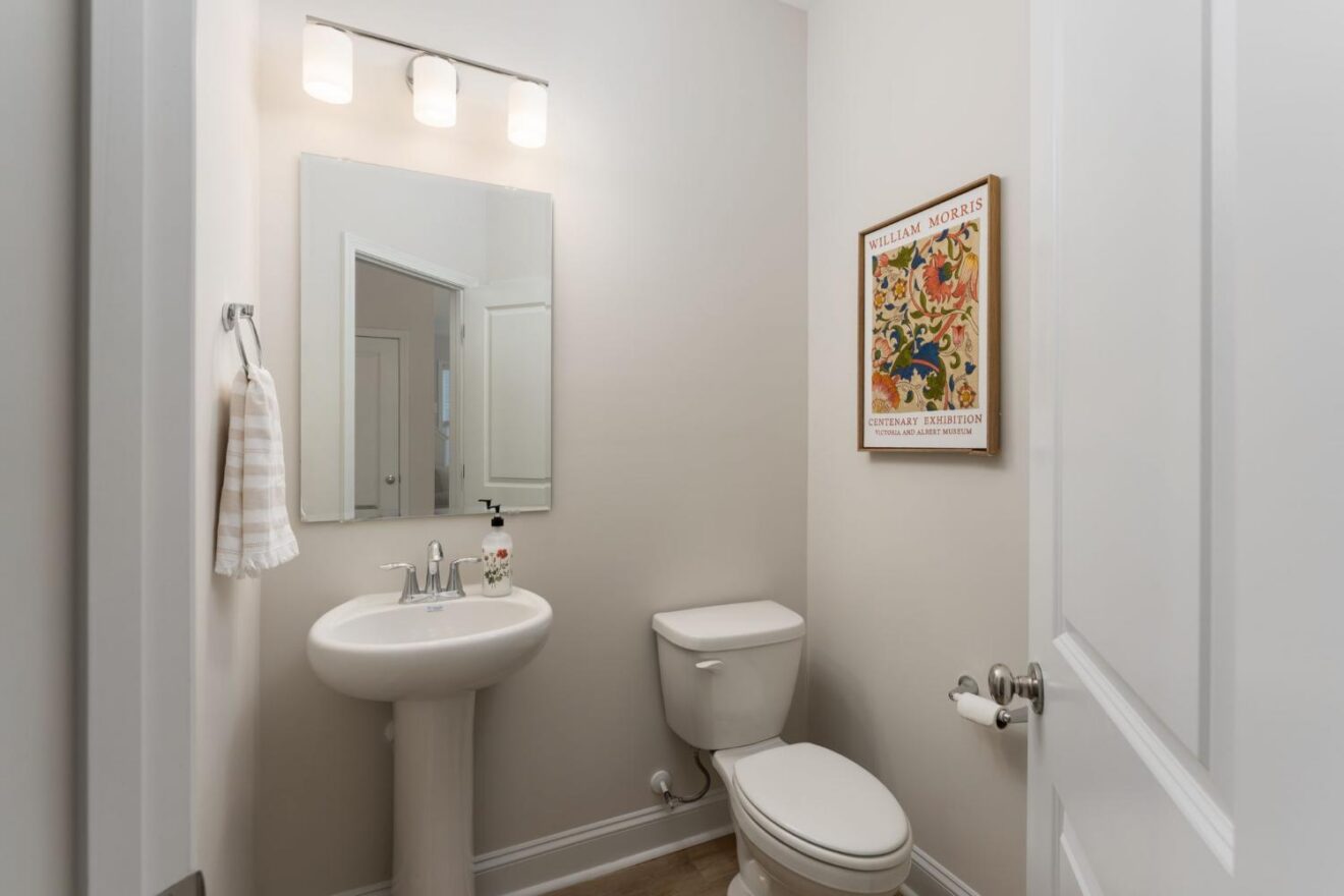 The Mt. Vernon plan by Stevens Fine Homes offers 3 bedrooms, 2.5 baths, designer-curated kitchen with soft-close cabinetry & quartz countertops, a formal dining room, inviting fireplace, rear covered porch, flexible upstairs loft and beautiful finishes throughout! The bright breakfast area lends access to the peaceful rear covered porch, while the great room features an inviting fireplace with marble surround. The formal dining room offers a lovely space to entertain and boasts gorgeous wainscoting detail, and a convenient powder bath completes the first floor. Upstairs, you’ll find the primary suite featuring a trey ceiling and an attached bath with double vanity, 12×24 tile flooring, a large walk-in tile shower, a water closet, linen closet & large walk-in closet. A flexible loft space makes the perfect home theater or playroom. Two additional bedrooms, a well-appointed guest bath and a laundry room with convenient cabinetry complete the home. Designer finishes include luxury vinyl plank flooring throughout the first floor, tile flooring in all baths & laundry, quartz counters in kitchen & full baths, fireplace with marble surround, 5 1/4” baseboards and thoughtful trim details, elevated lighting & plumbing fixtures, sod & irrigation in yard, exterior coach & flood lights, gutters and more!