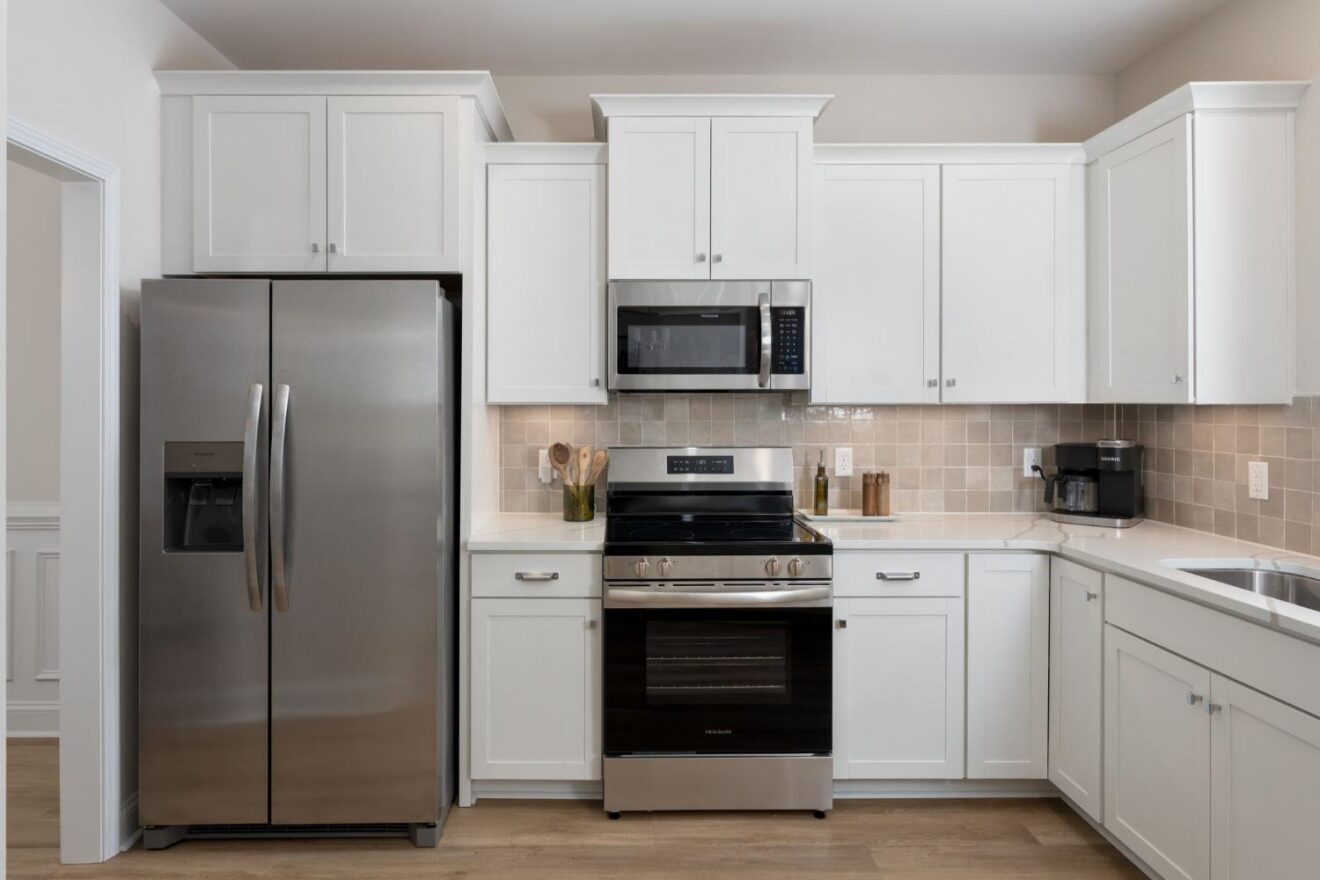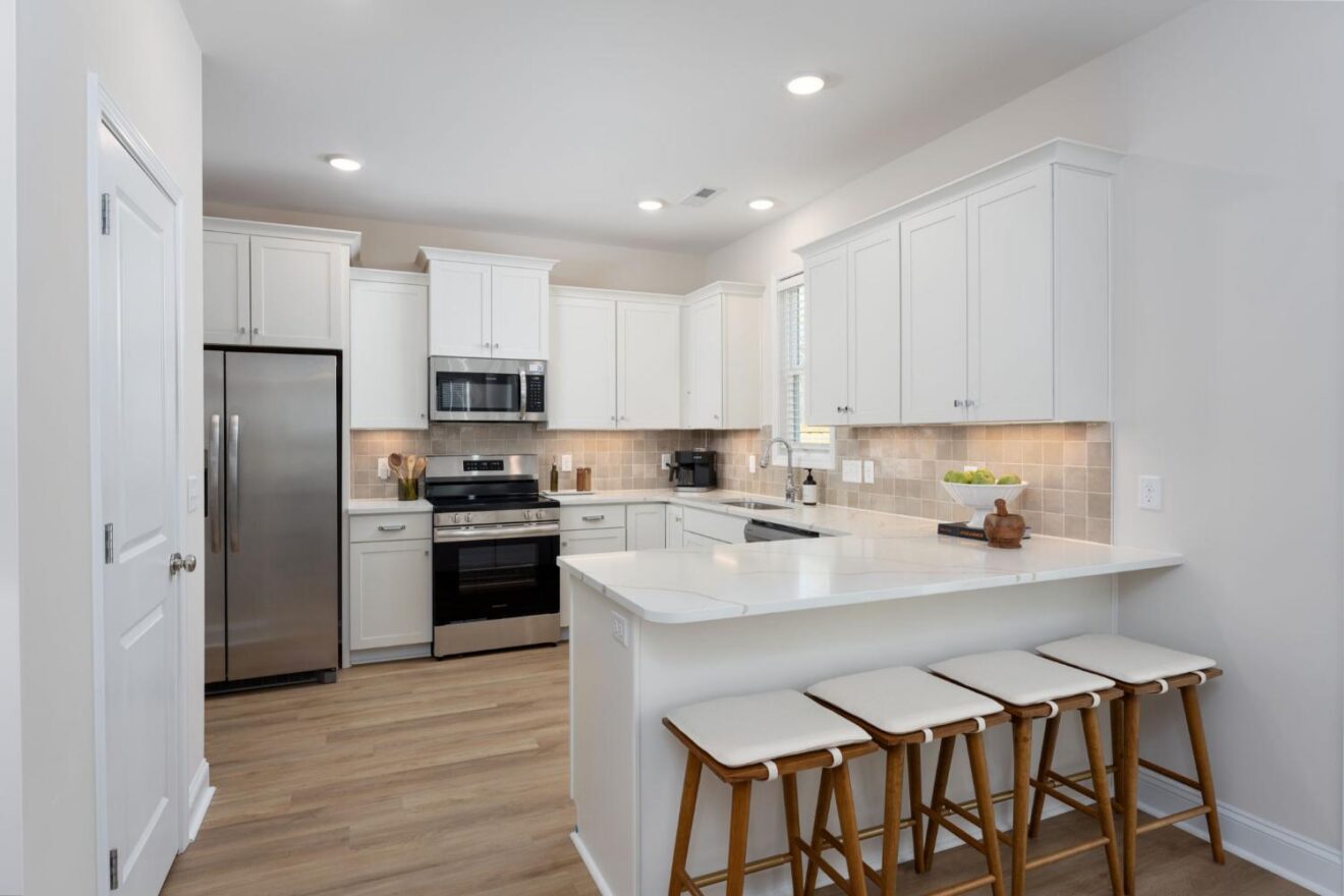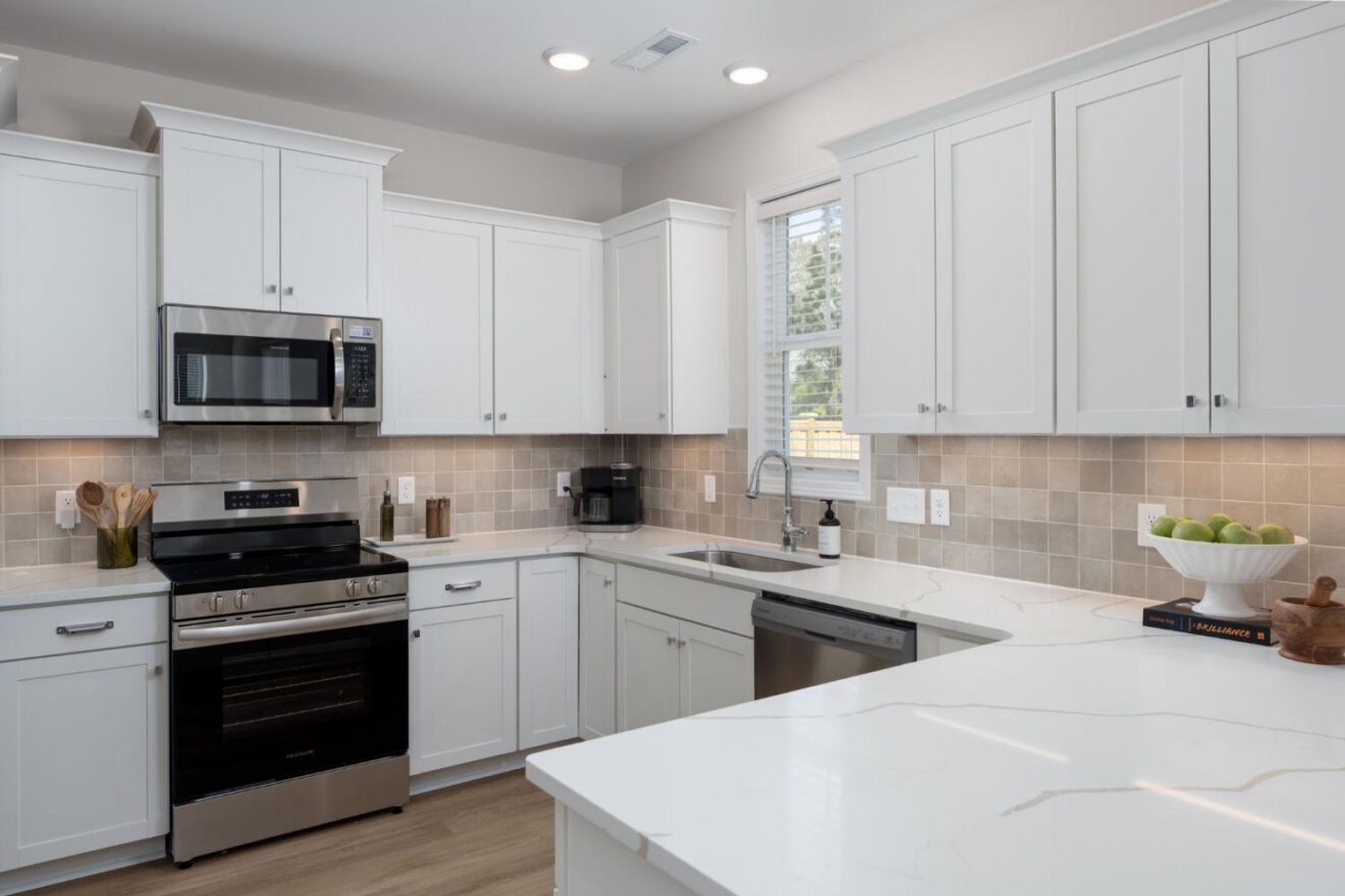 - Designer-curated kitchen with quartz countertops, soft-close cabinetry and under-cabinet lighting.