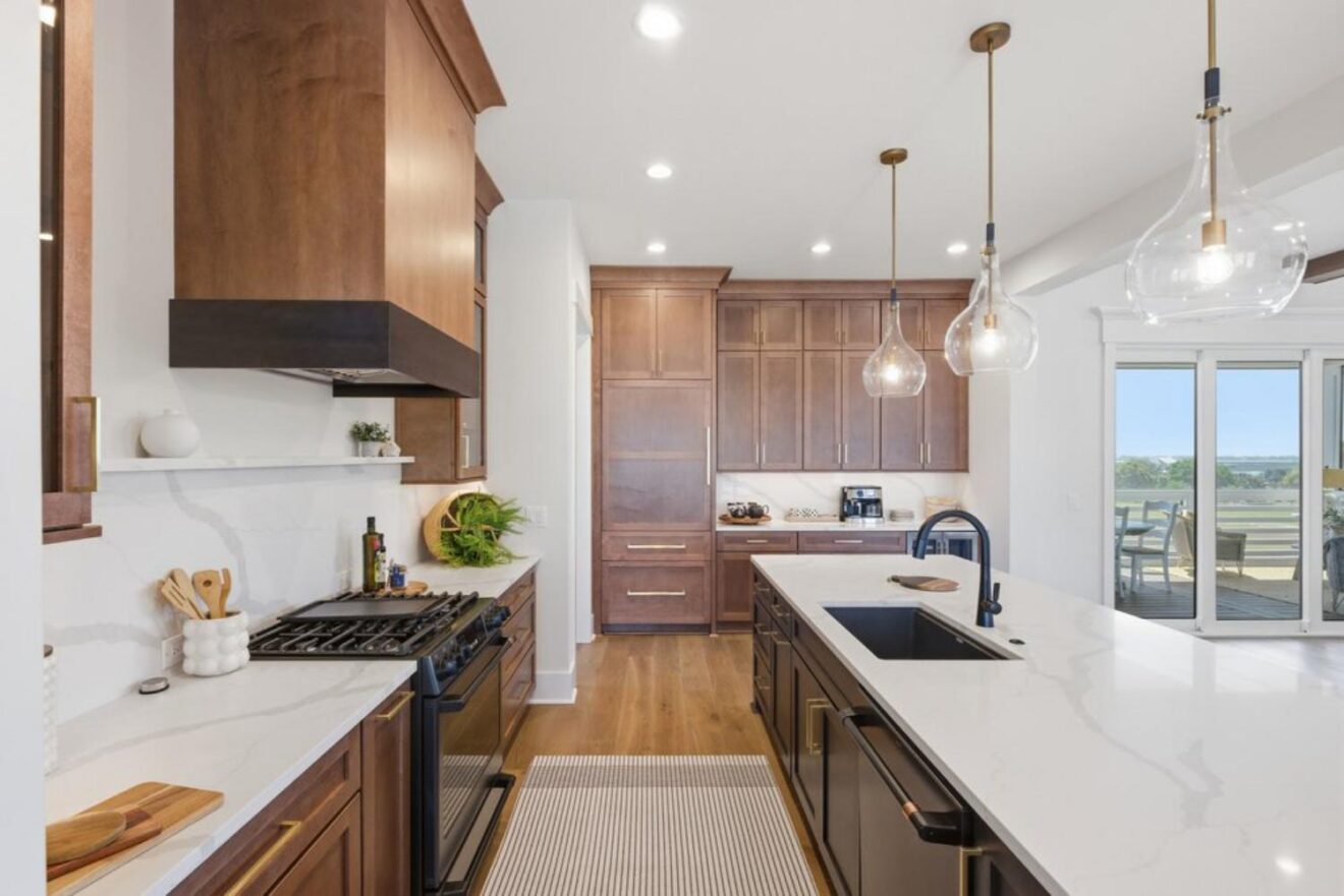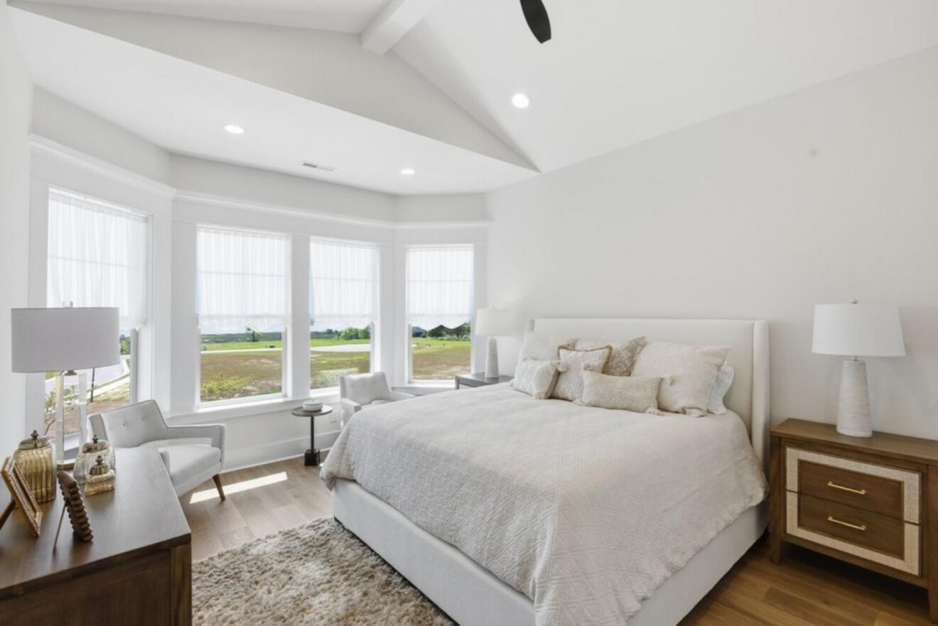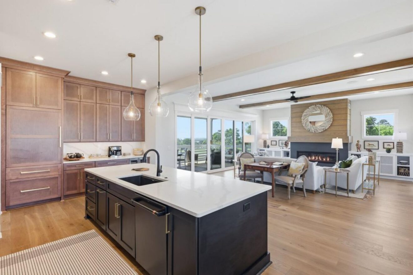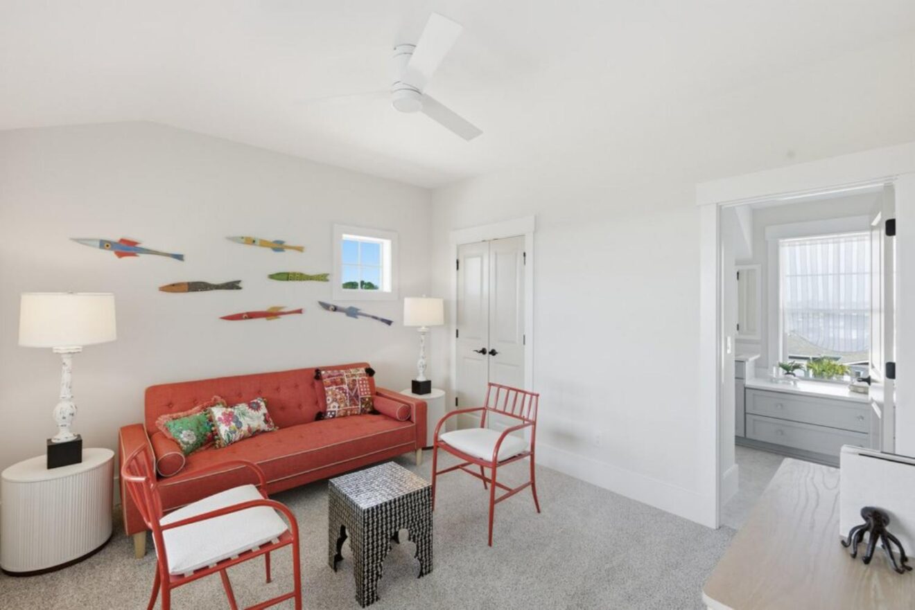 Inside, rich hardwood flooring, a chef’s kitchen with an oversized island, and a grand stone fireplace create an atmosphere of refined comfort. Each bedroom features an en suite bath, including a light-filled primary suite with bay windows, a spacious walk-in closet, and a spa-style zero-entry shower. Designed to embrace coastal living, the home offers multiple outdoor spaces — from a welcoming covered front porch to a second-floor outdoor living room with fireplace and a third-floor covered porch with sweeping views. The Port Royal Sound delivers grandeur without excess, pairing architectural presence with relaxed Carolina charm.