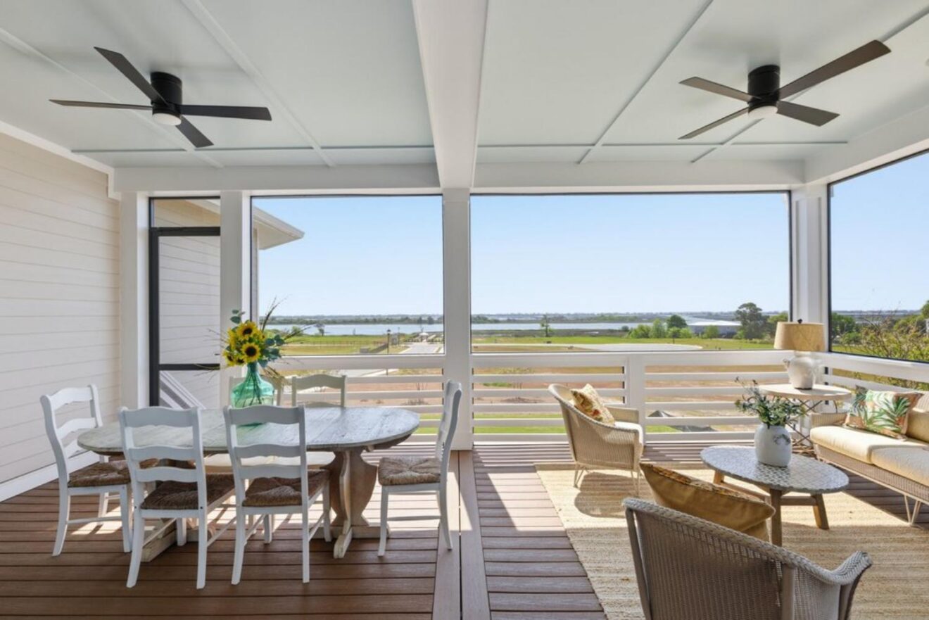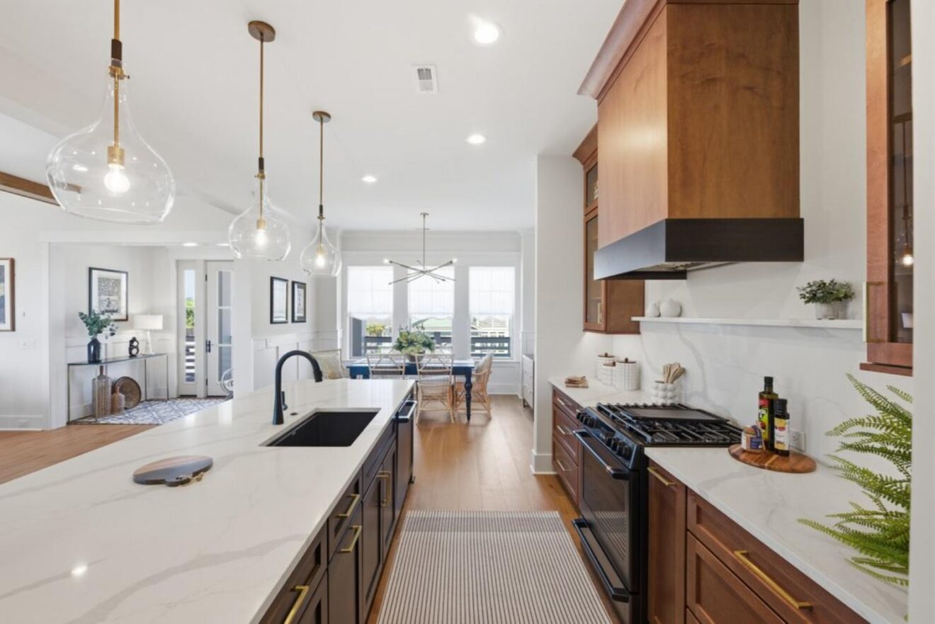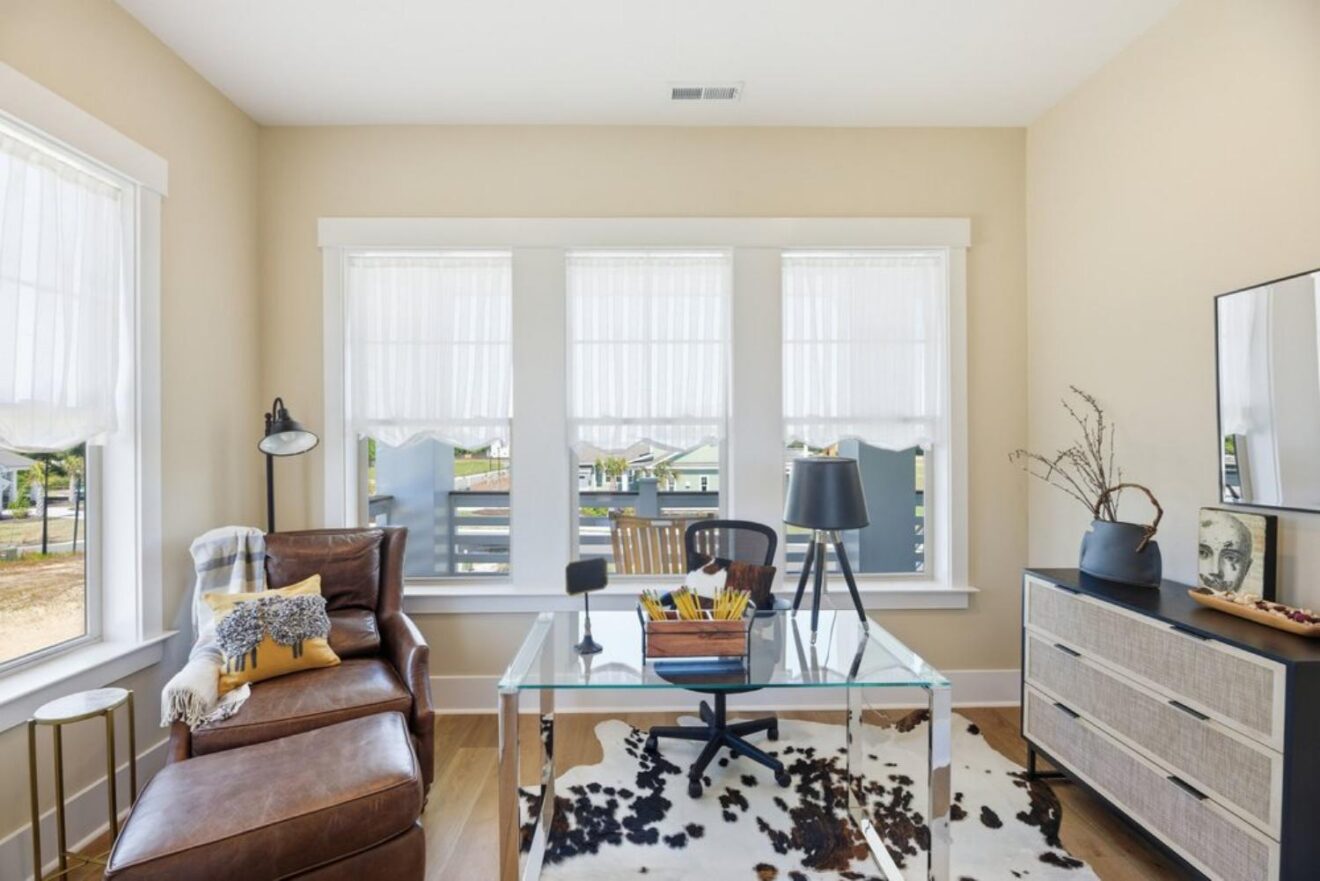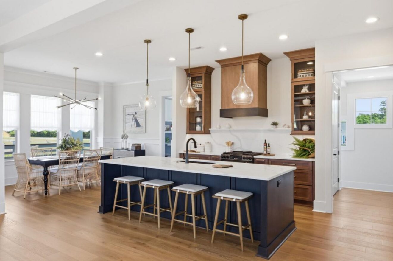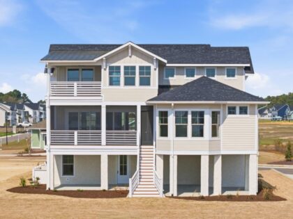 The Port Royal Sound is a coastal retreat offering four bedrooms and three-and-a-half baths across three thoughtfully designed levels. Inspired by classic Lowcountry coach house architecture, the home blends timeless elegance with modern livability. Twin carriage-style garage doors anchor the ground level, while expansive living spaces above are easily accessed by a private three-stop elevator.