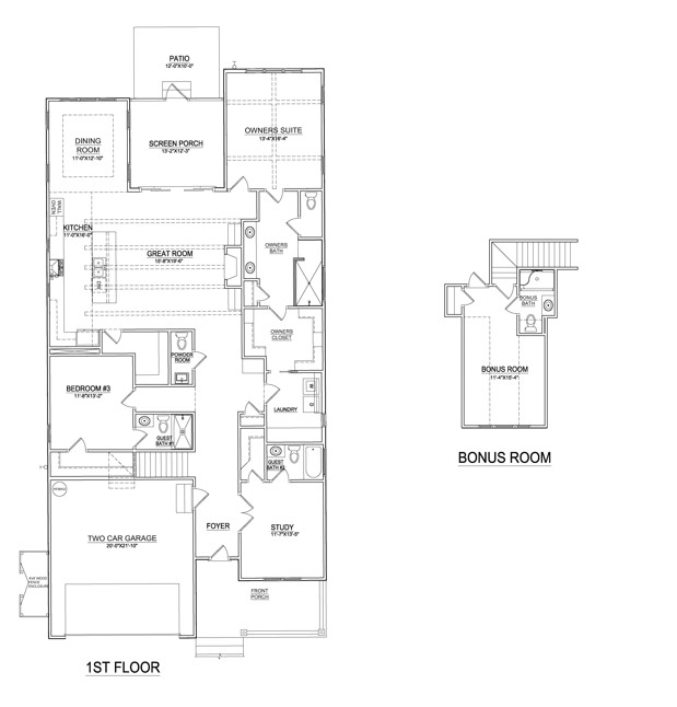 - 11′ Ceilings in the Foyer, Great Room, and Kitchen