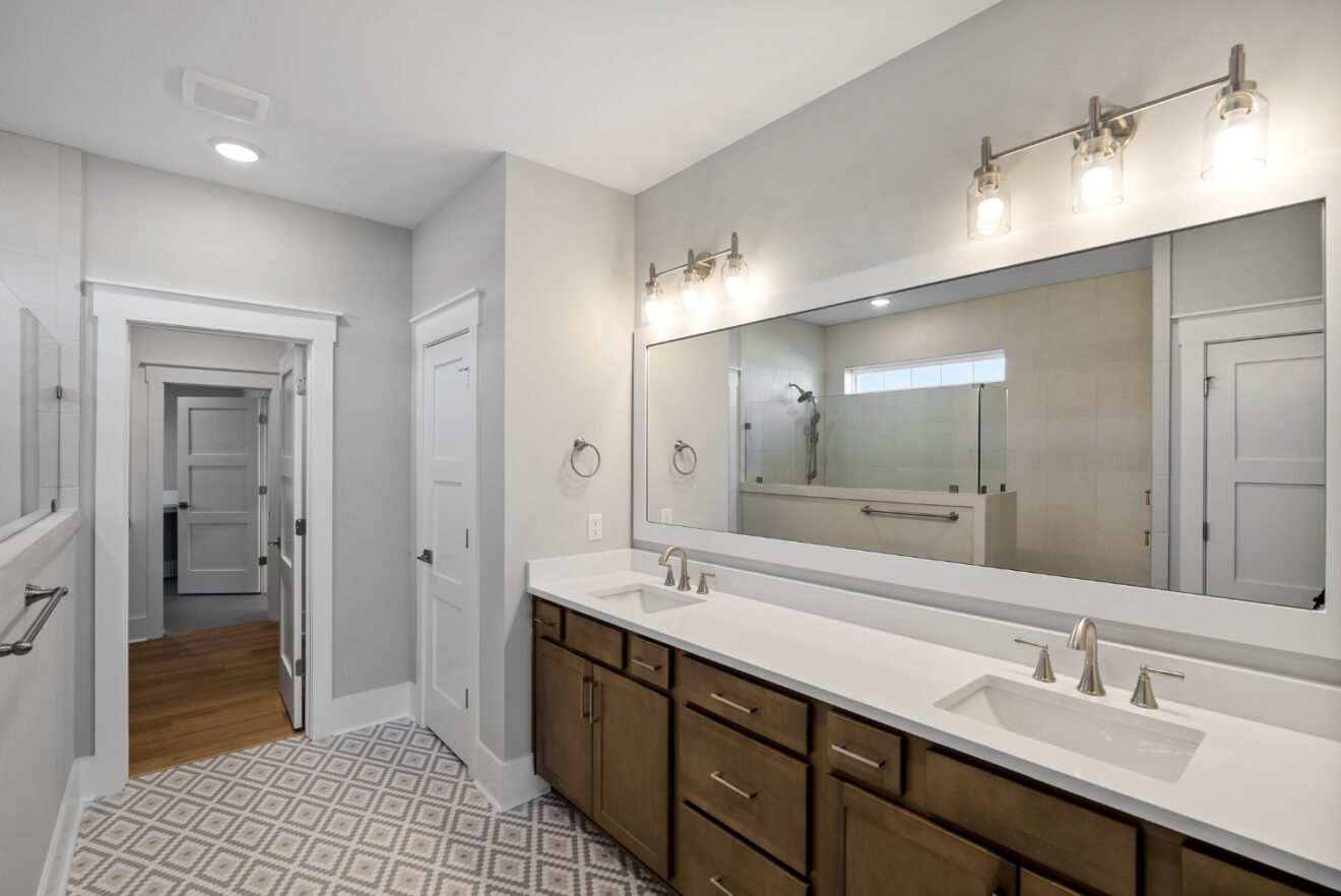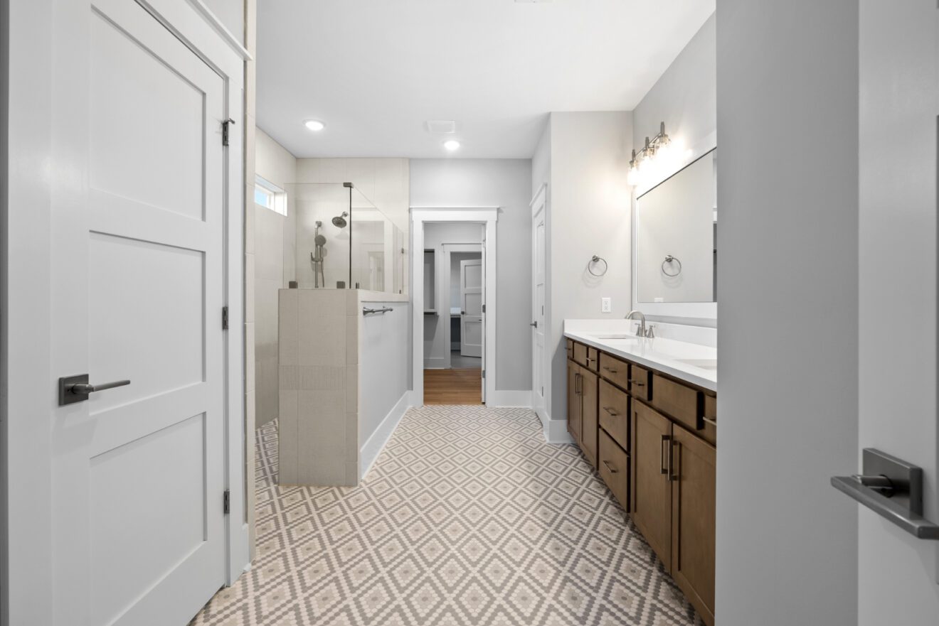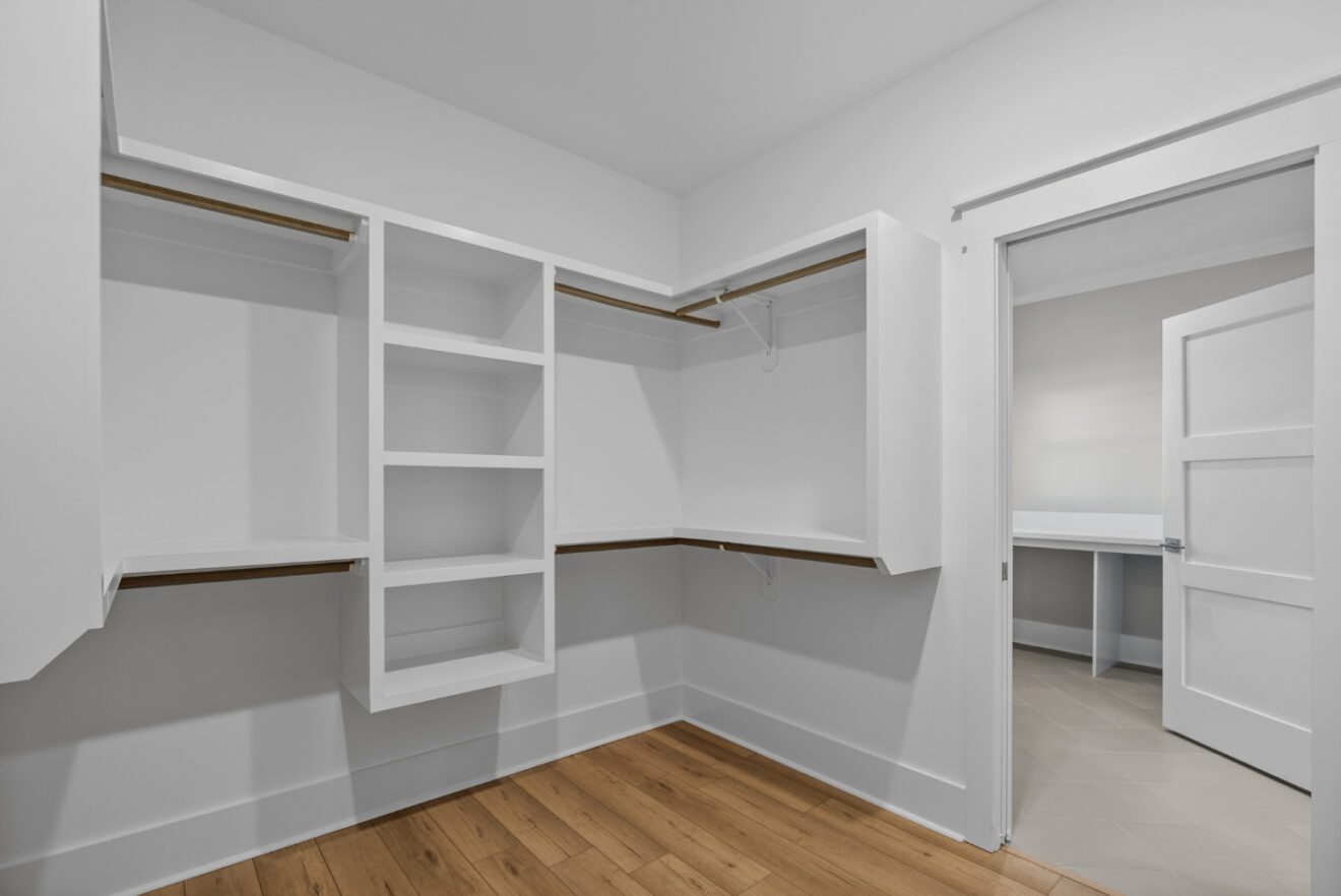The great room showcases exposed beams, a fireplace with built-ins, and elegant architectural detail. The owner’s suite features a vaulted ceiling and a spa-like bath complete with a zero-entry frameless glass shower and double vanities. A spacious custom closet with wood shelving conveniently connects to the laundry room. Upstairs, an extra-large bonus room with a full bath provides flexible space for guests, a home office, or recreation.