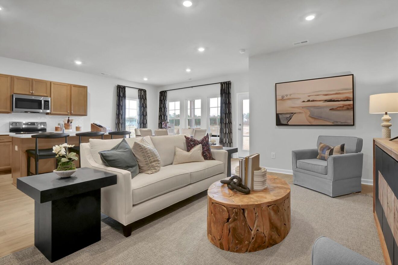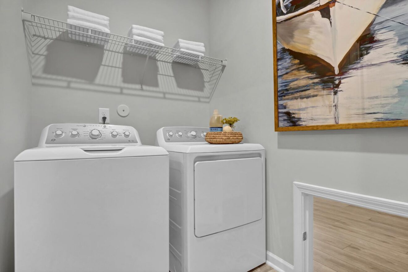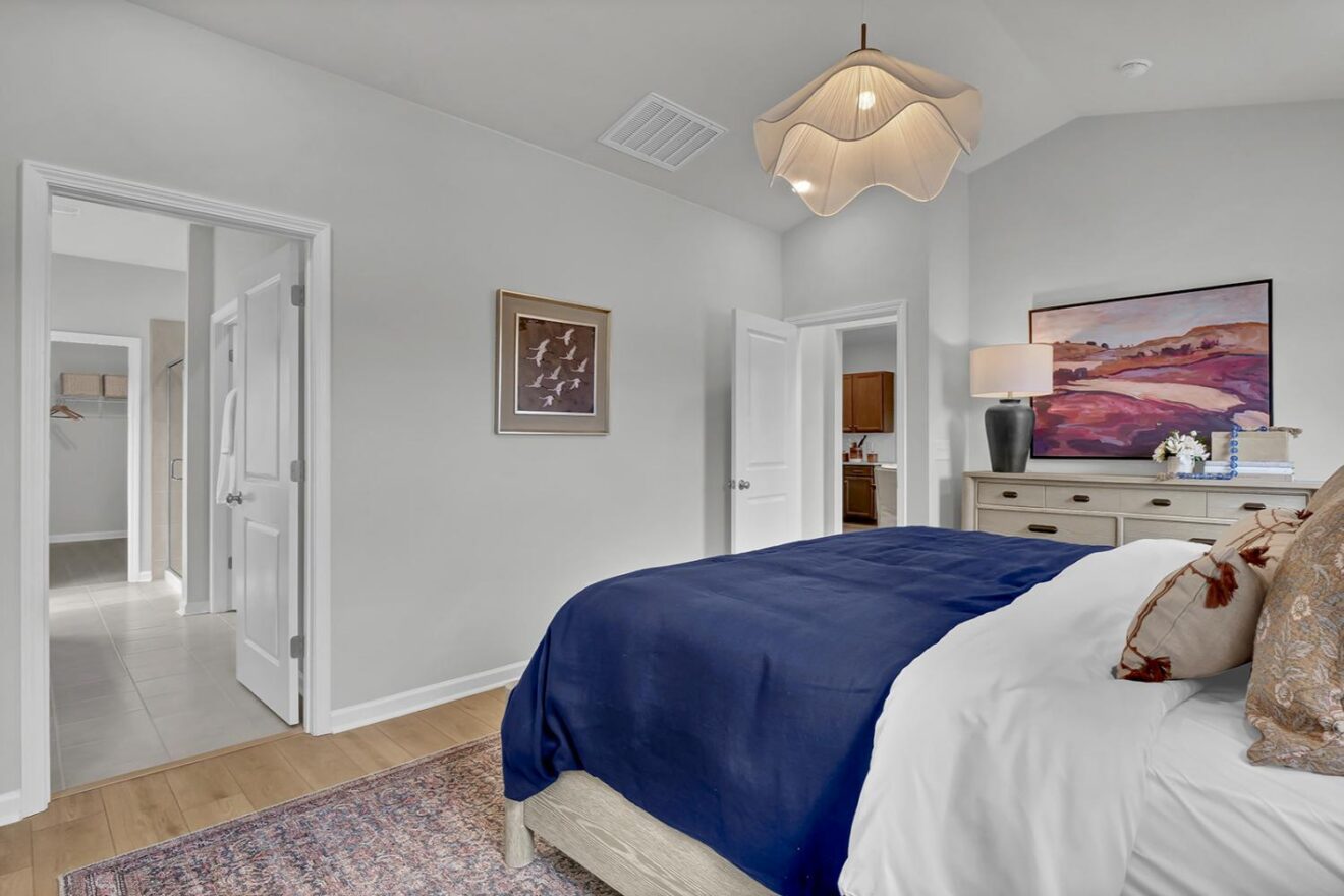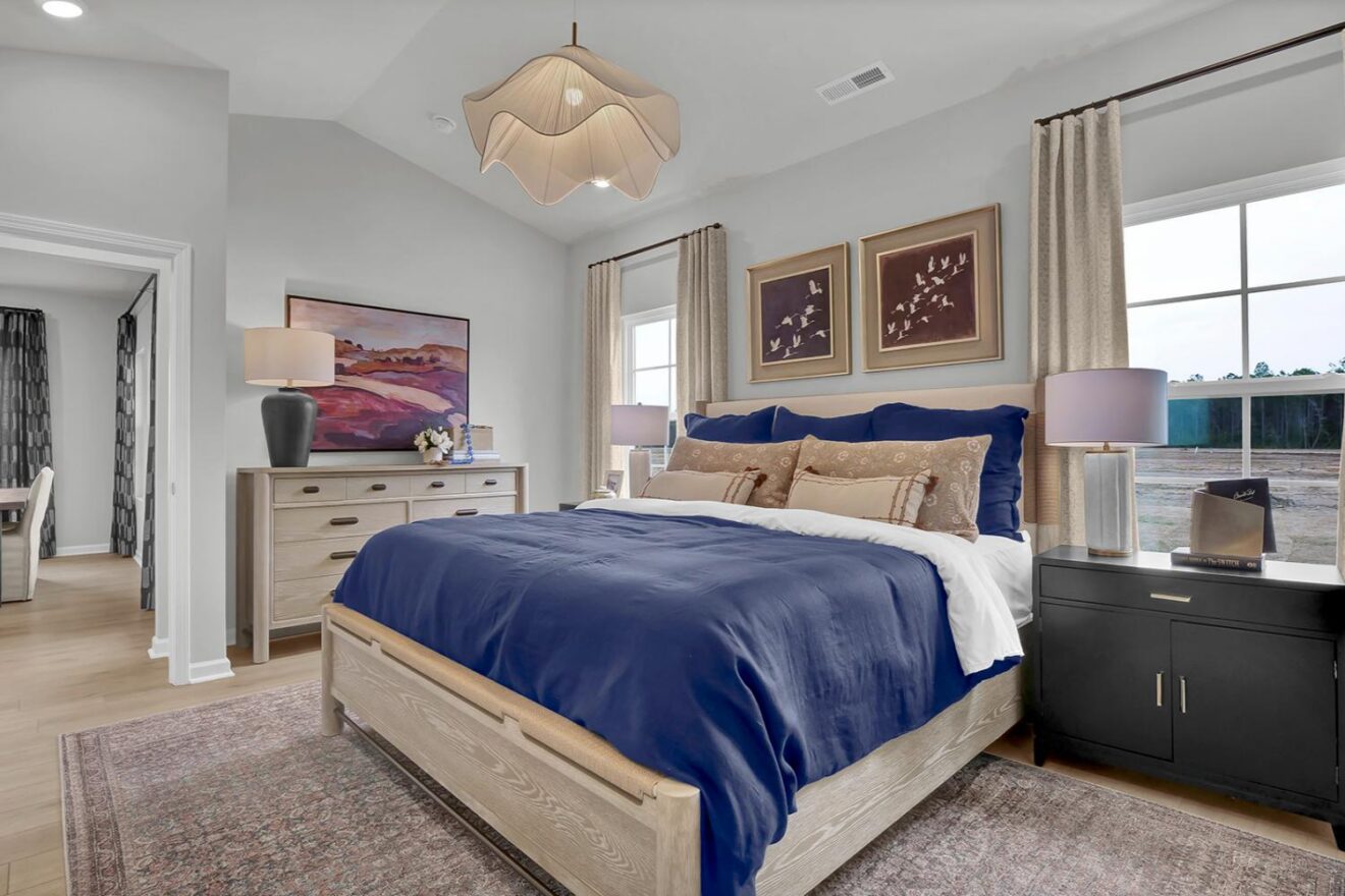 The Lawrence is a ranch-and-a-half designed for easy coastal living, offering main-level convenience with the added benefit of flexible space upstairs. This thoughtfully crafted home features three bedrooms, three bathrooms, and 1,978 square feet of comfortable style near the Brunswick County beaches. The main floor includes an open-concept layout with a bright great room and dining area, along with a chef-inspired kitchen featuring stone-gray cabinets, quartz countertops, a large island, and a spacious walk-in pantry. The primary suite sits privately at the back of the home with a vaulted ceiling, a spa-inspired bath with tiled floors, a walk-in shower, a water closet, and a convenient laundry pass-thru from the walk-in closet. A secondary bedroom and full bath at the front offer an ideal space for guests or a home office. Upstairs, a third bedroom, full bath, and loft area provide the perfect retreat for visitors or a cozy hobby space.