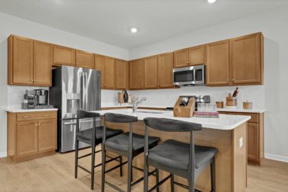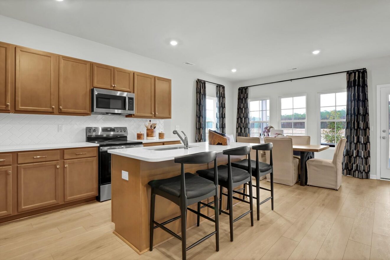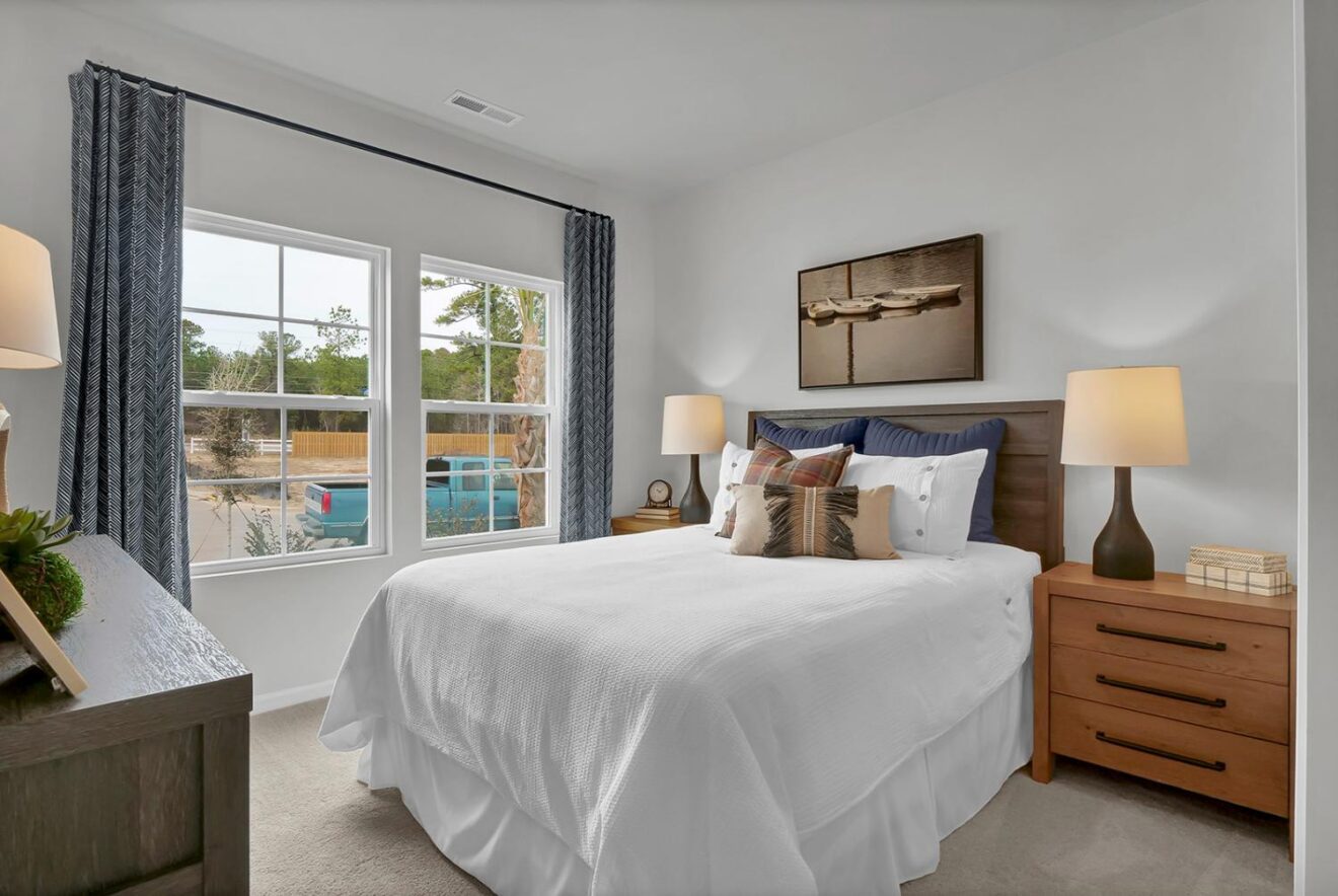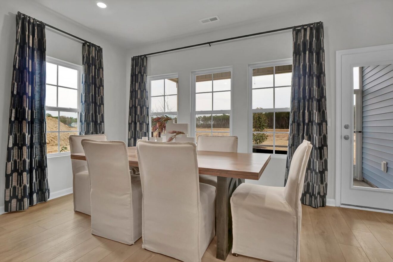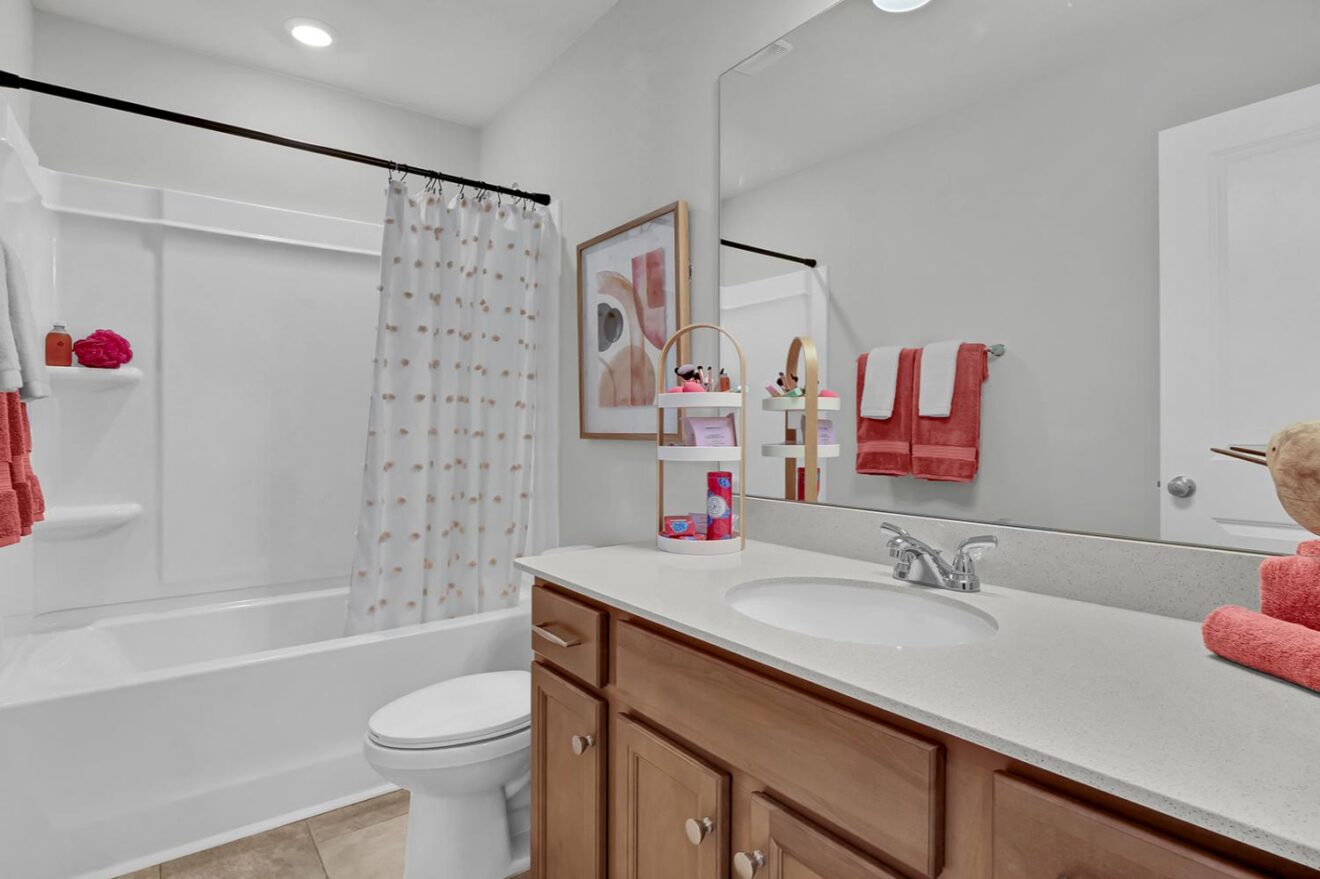 The Lawrence is a ranch-and-a-half designed for easy coastal living, offering main-level convenience with the added benefit of flexible space upstairs. This thoughtfully crafted home features three bedrooms, three bathrooms, and 1,978 square feet of comfortable style near the Brunswick County beaches. The main floor includes an open-concept layout with a bright great room and dining area, along with a chef-inspired kitchen featuring stone-gray cabinets, quartz countertops, a large island, and a spacious walk-in pantry. The primary suite sits privately at the back of the home with a vaulted ceiling, a spa-inspired bath with tiled floors, a walk-in shower, a water closet, and a convenient laundry pass-thru from the walk-in closet. A secondary bedroom and full bath at the front offer an ideal space for guests or a home office. Upstairs, a third bedroom, full bath, and loft area provide the perfect retreat for visitors or a cozy hobby space.