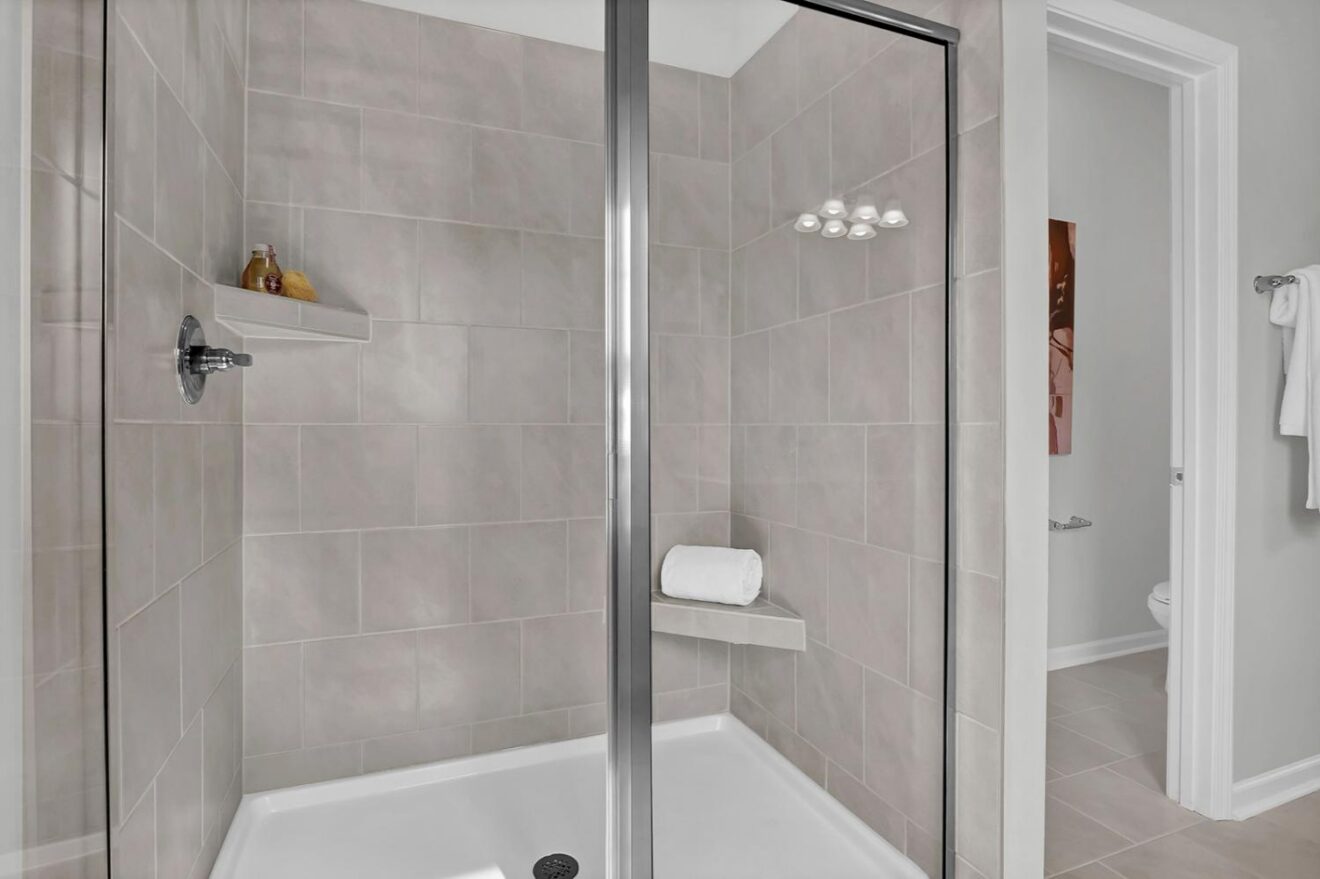 - Dual sinks, tiled walk-in shower, and tiled floors in primary suite