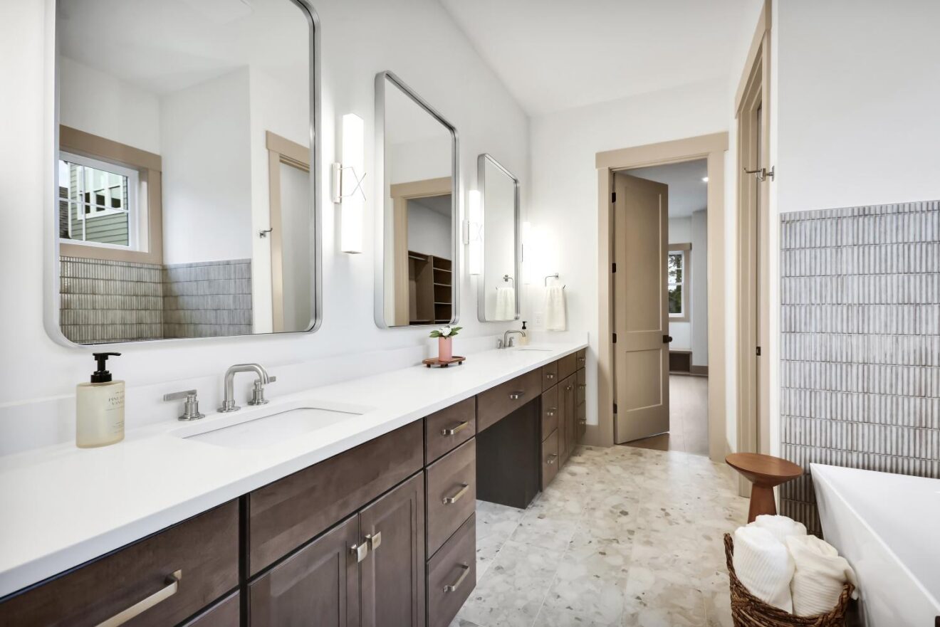 - Main primary suite with freestanding soaking tub, tiled shower & expansive vanity with makeup area