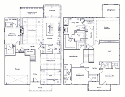 - Sitting room, vestibule, two walk-in closets, luxury bath, and connection to laundry room in the first primary suite